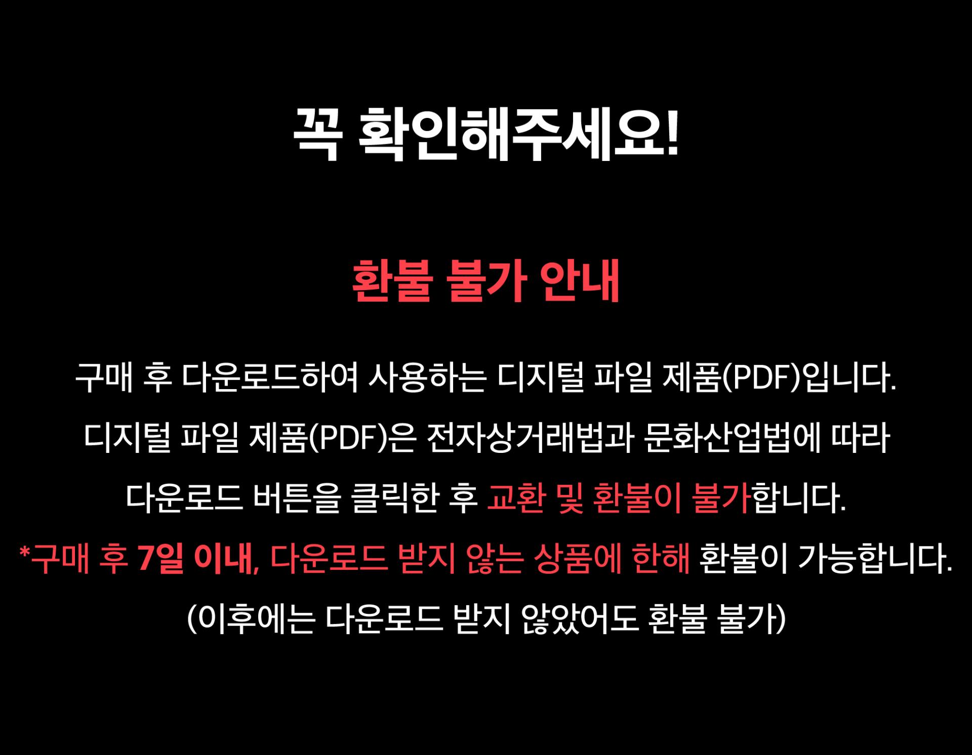 다운로드 버튼을 클릭한 후 교환 및 환불이 불가합니다. 꼭 확인 후 주문해주세요.